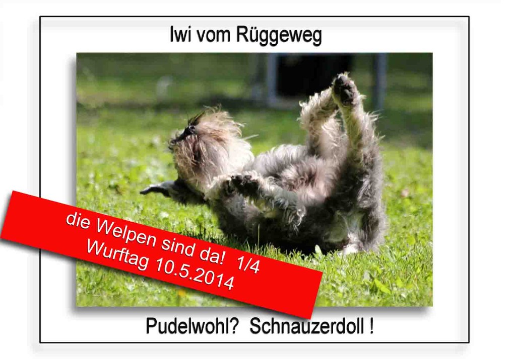 Und noch eine gute Nachricht: Die Zwergschnauzerhündin pfs Annemarie Iwi vom Rüggeweg ist trächtig. Sie wohnt aber nicht mehr bei uns am Rüggeweg, sondern in Dortmund-Aplerbeck.Hier auf der Webseite der Zwergschnauzerzucht vom Watermannberg stehen alle Informationen. Einfach hier anklicken.