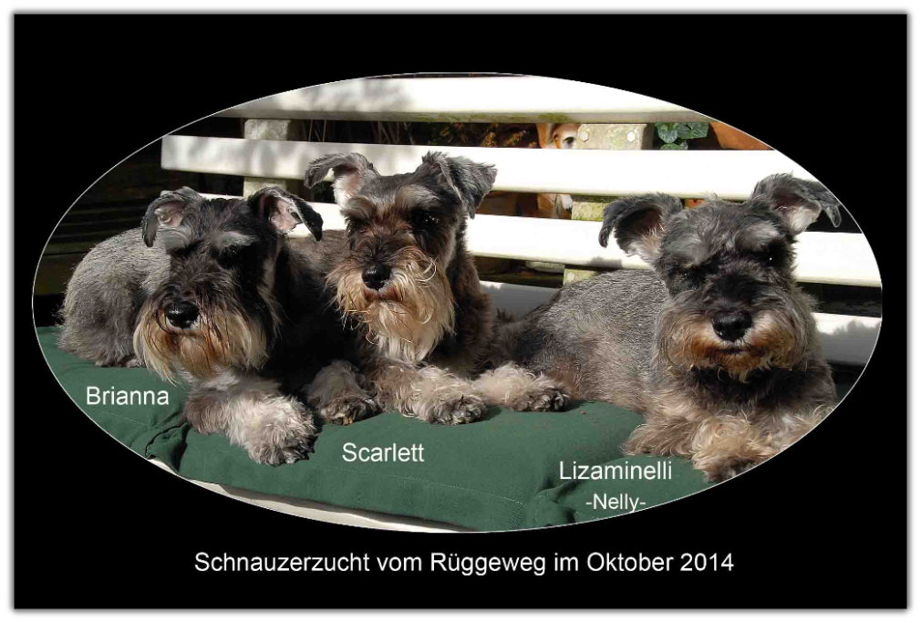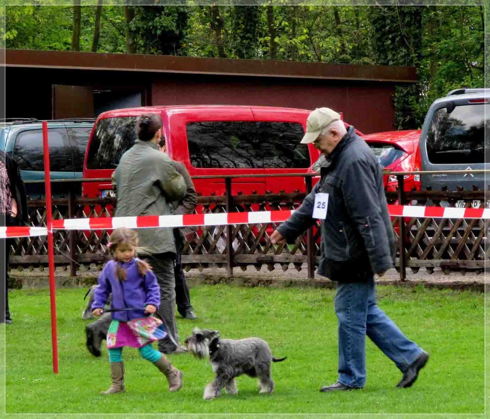 Am Samstag, den 3. Mai 2014, waren wir mit unserer pfs Zwergschnauzerhündin Brianna vom Rüggeweg bei der Zuchtzulassungsprüfung in Dormagen. Zuchtrichter Ernst Theisen nahm die Überprüfung vor. Es war alles okay. Nun kann es mit der Schnauzerzucht vom Rüggeweg weitergehen. Briannas nächste Hitze ist voraussichtlich im August/ September.