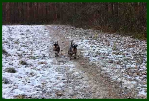 Wir haben die Hunde wegen der dünnen Eisschicht auf dem See aus Vorsicht nicht freilaufen lassen.